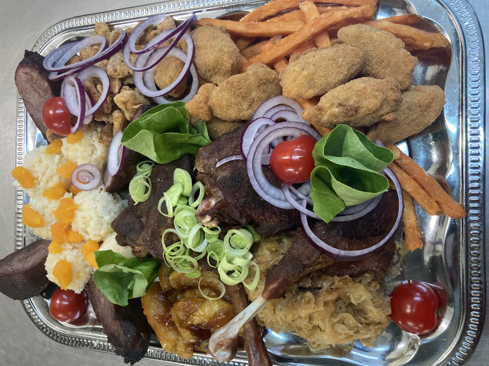 Sült libacomb, párolt káposzta, karamellizált alma